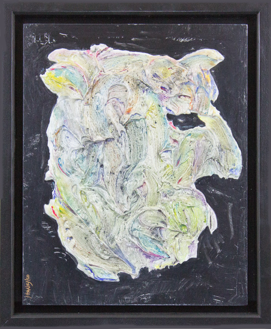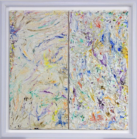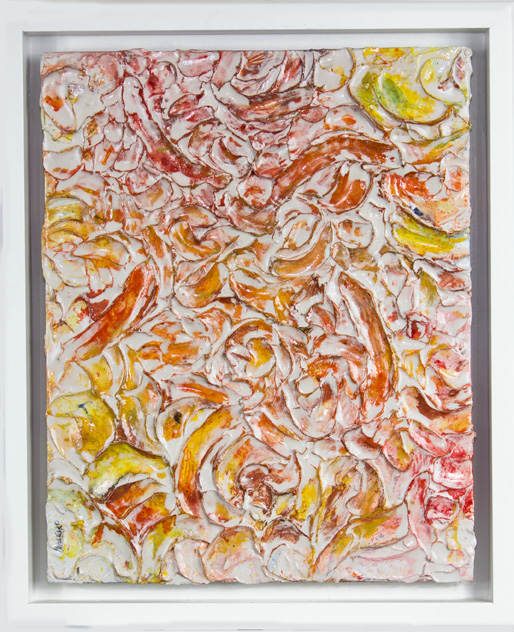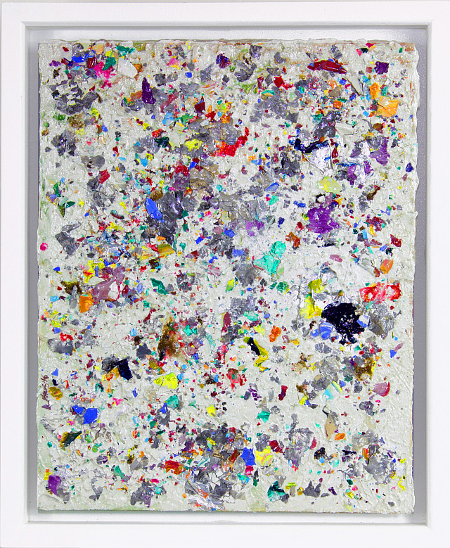 Description: This mosaic will brighten any space for the discerning patron who relishes truly unique art. A special techinque is used to embed paint chips creating the mosaic which are sealed by many coats of gloss varnish to ensure long-term stability. This singular piece is truly a one-of-a-kind find.